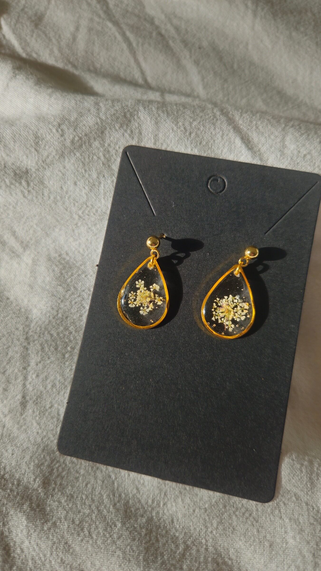 La forme en goutte souligne la beauté délicate des ombrelles de ciguë, offrant un look distinctif et naturel. Chaque pièce est soigneusement encapsulée pour préserver son charme.